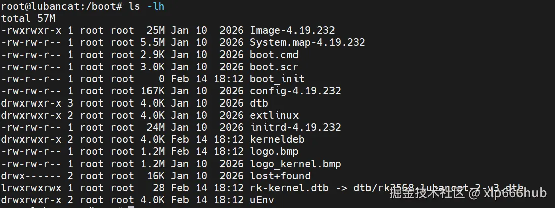 第二件事是看一下你的板子在启动阶段加载的是哪个设备树文件,进入到板子的 /boot 目录下,如下图: