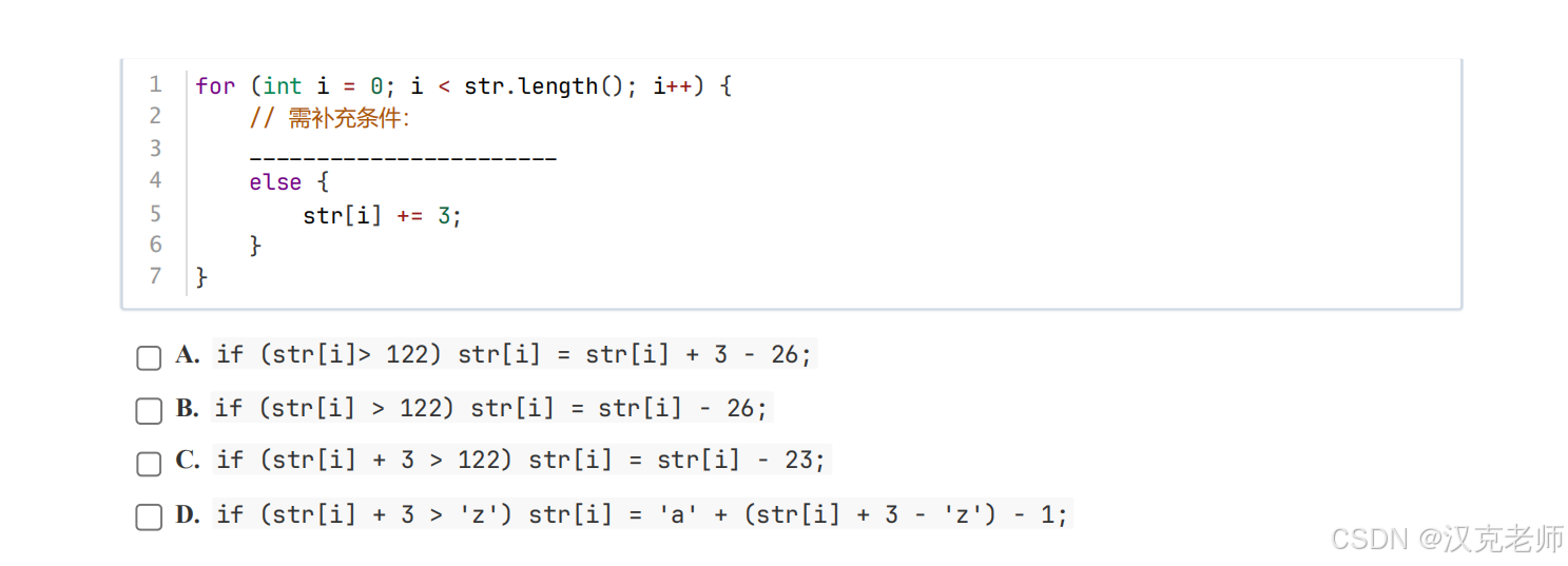 👉**D.**if (str[i] + 3 > 'z') str[i] = 'a' + (str[i] + 3 - 'z') - 1
