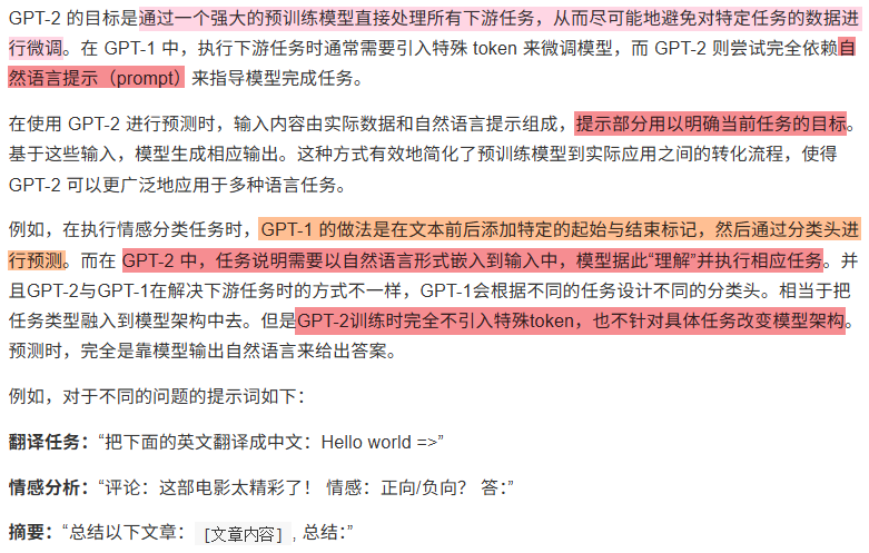 GPT-2 的设计初衷是为了解决 GPT-1 与 BERT 虽然引入了预训练机制,但在处理具体下游任务时仍需进行微调的局限