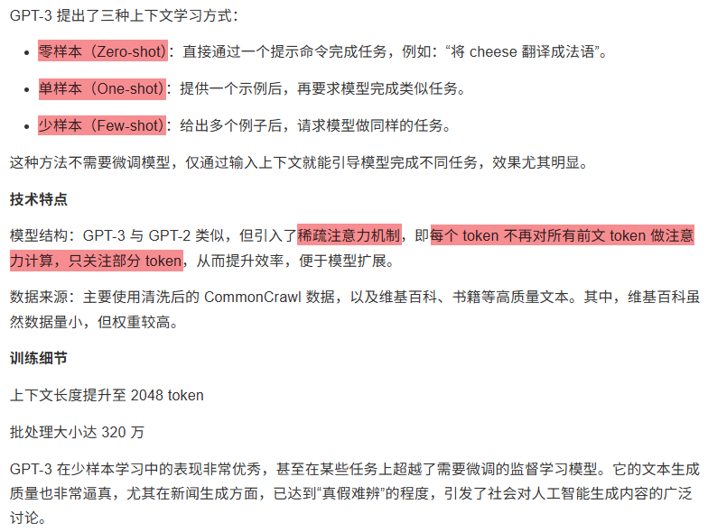 传统模型(如 BERT 和 GPT-1)在处理特定任务时,通常需要大量标注数据进行微调。而 GPT-3 探索的是另一种方式: