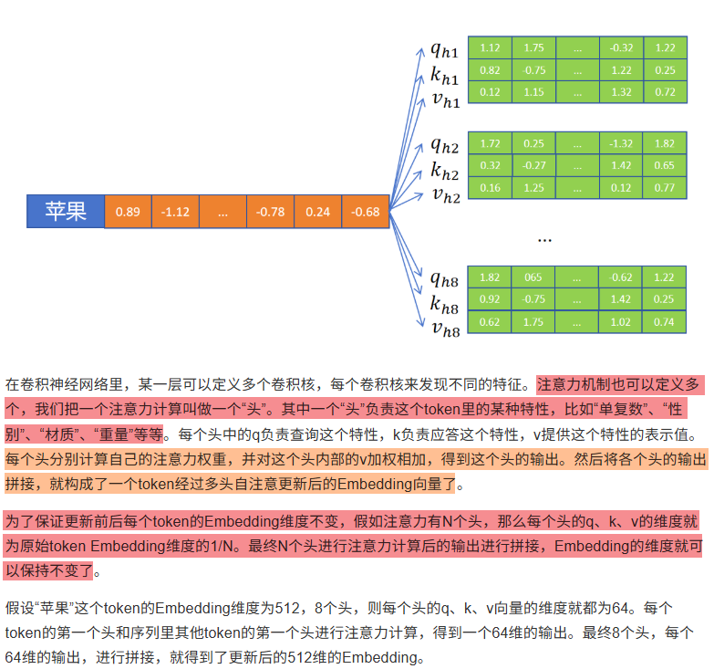 自注意力让"苹果"看到后面的词("好吃"或"股价"),从而确定自己的意思