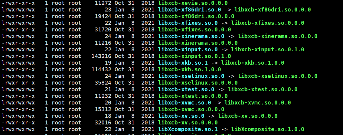 同样的在系统库中同样也有诸多的软链接的使用,或是对文件路径有要求,或是对文件明明有要求,我们可以使用**ls -l /lib64/**指令进行查看