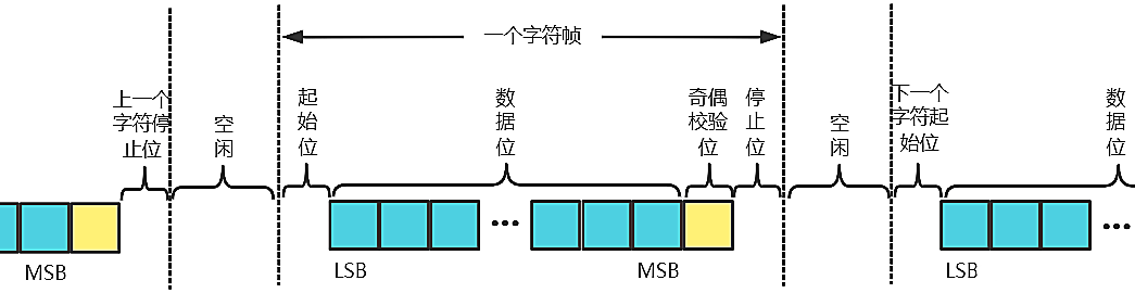 帧包含起始位、数据位、检验位与停止位。如下图所示: