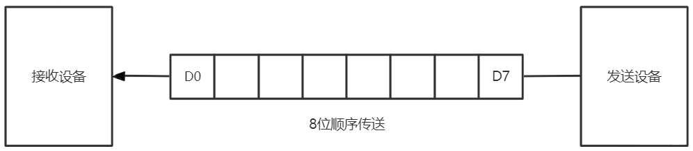串行通信仅依赖单条(或一对差分)数据线,按照特定的时序协议,将数据流逐位(Bit by Bit)依次发送至总线。如下图所示: