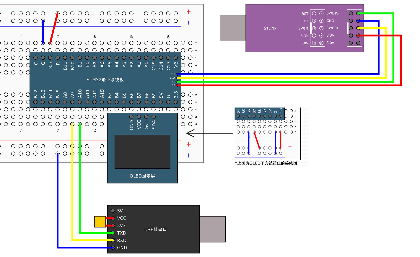 - 业务处理:提取缓存数据后,将其十六进制数值实时刷新至 OLED 屏幕,并立即调用 Serial_SendByte 将该字节原样注入发送 TDR 寄存器,完成数据回显(Loopback Test)。