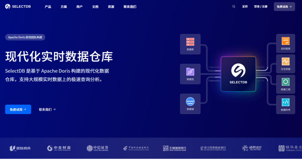 SelectDB 是基于 Apache Doris 内核构建的新一代云原生实时数仓,提供存算分离、实时极速和融合统一的分析体验。它不仅在宽表聚合和高并发点查场景下具备极致性能,还支持结构化与半结构化数据的联邦分析。