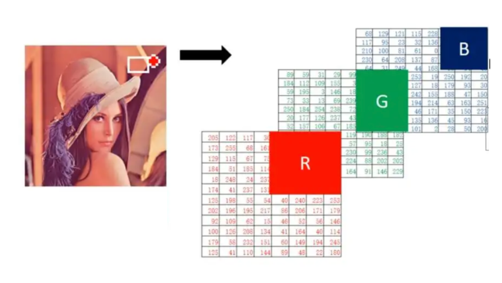 在深度学习中,我们使用的图像大多是彩色图,彩色图由 RGB 3 个通道组成,如下图所示: