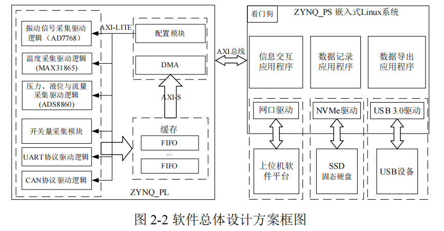 软件总体设计方案如图 2-2 所示,主要由 ZYNQ 的 PL 端硬件接口驱动逻