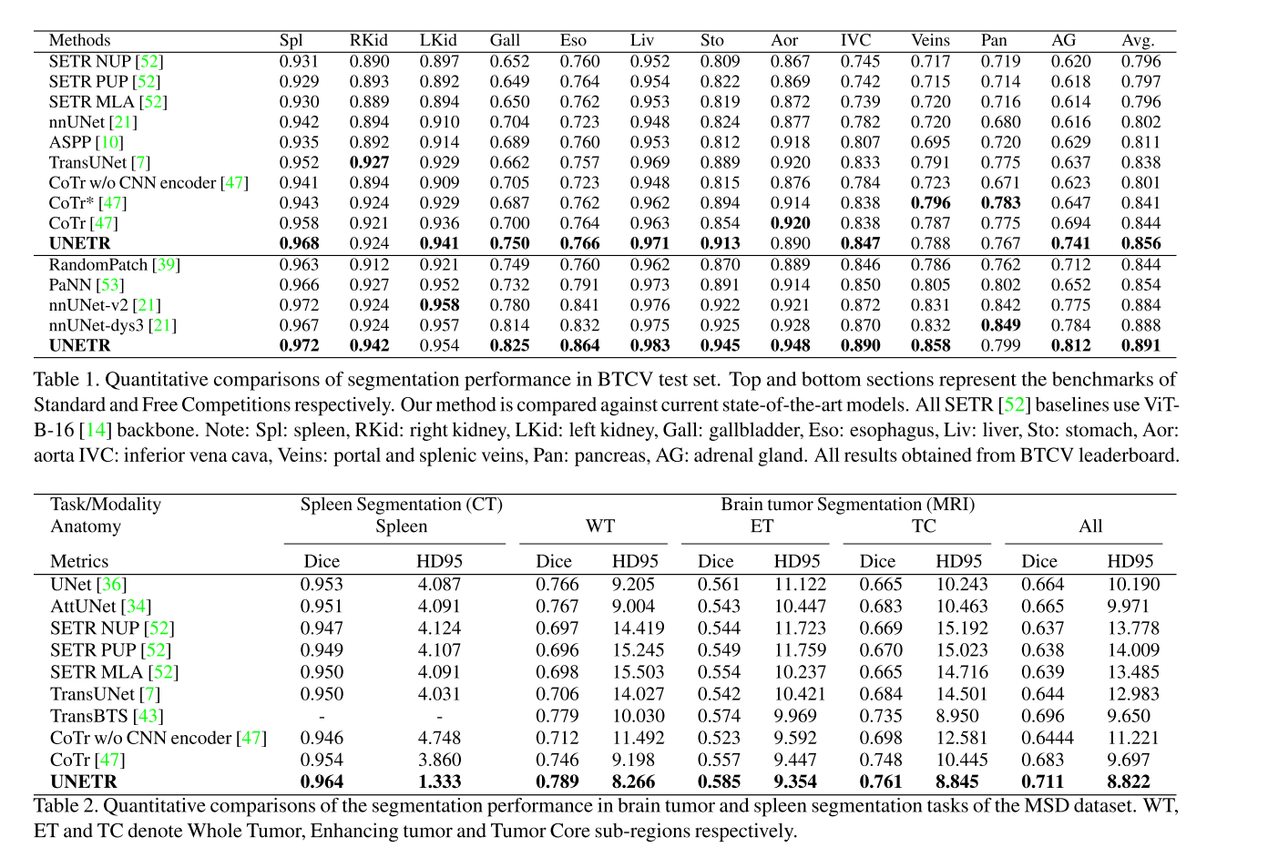 该文提出了针对3D 医学图像分割的UNETR新型 Transformer 基架构,该架构将 3D 分割任务重构为序列到序列预测问题 ,突破了传统 FCNNs 卷积层局部性导致的长距离空间依赖学习局限;其以Transformer 作为主编码器 有效捕捉全局多尺度信息,搭配CNN 解码器捕捉局部空间信息,通过跨分辨率跳跃连接融合编码器不同层的特征,在BTCV(腹部 CT 多器官)和MSD(MRI 脑肿瘤、CT 脾脏)数据集上完成验证。