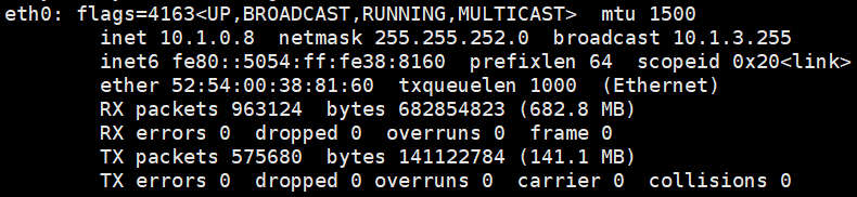 使用ifconfig命令即可查看ip地址,mac地址,MTU。