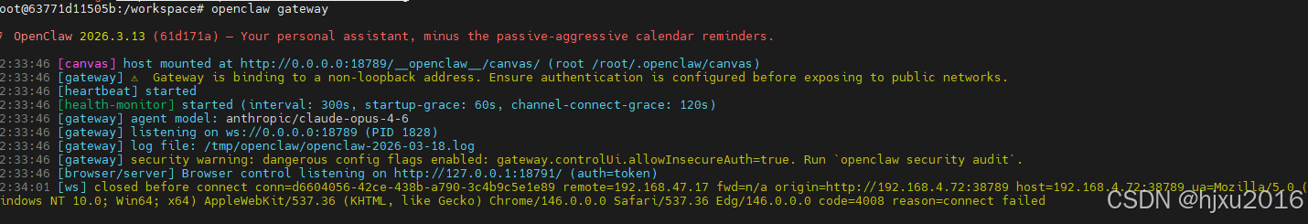 本文介绍在远程服务器使用Docker安装OpenClaw并配置局域网访问的方法。首先通过Docker命令创建容器,映射22、80和18789等关键端口。进入容器后执行安装脚本安装OpenClaw。然后配置局域网访问:设置网关绑定为局域网,允许非安全认证,获取本机IP并配置允许的来源Origins地址。最后重启网关服务并验证监听状态,确认服务在0.0.0.0监听后即可通过映射端口(如38789)在局域网内访问OpenClaw控制界面。整个过程解决了跨域访问和origin限制等关键问题。