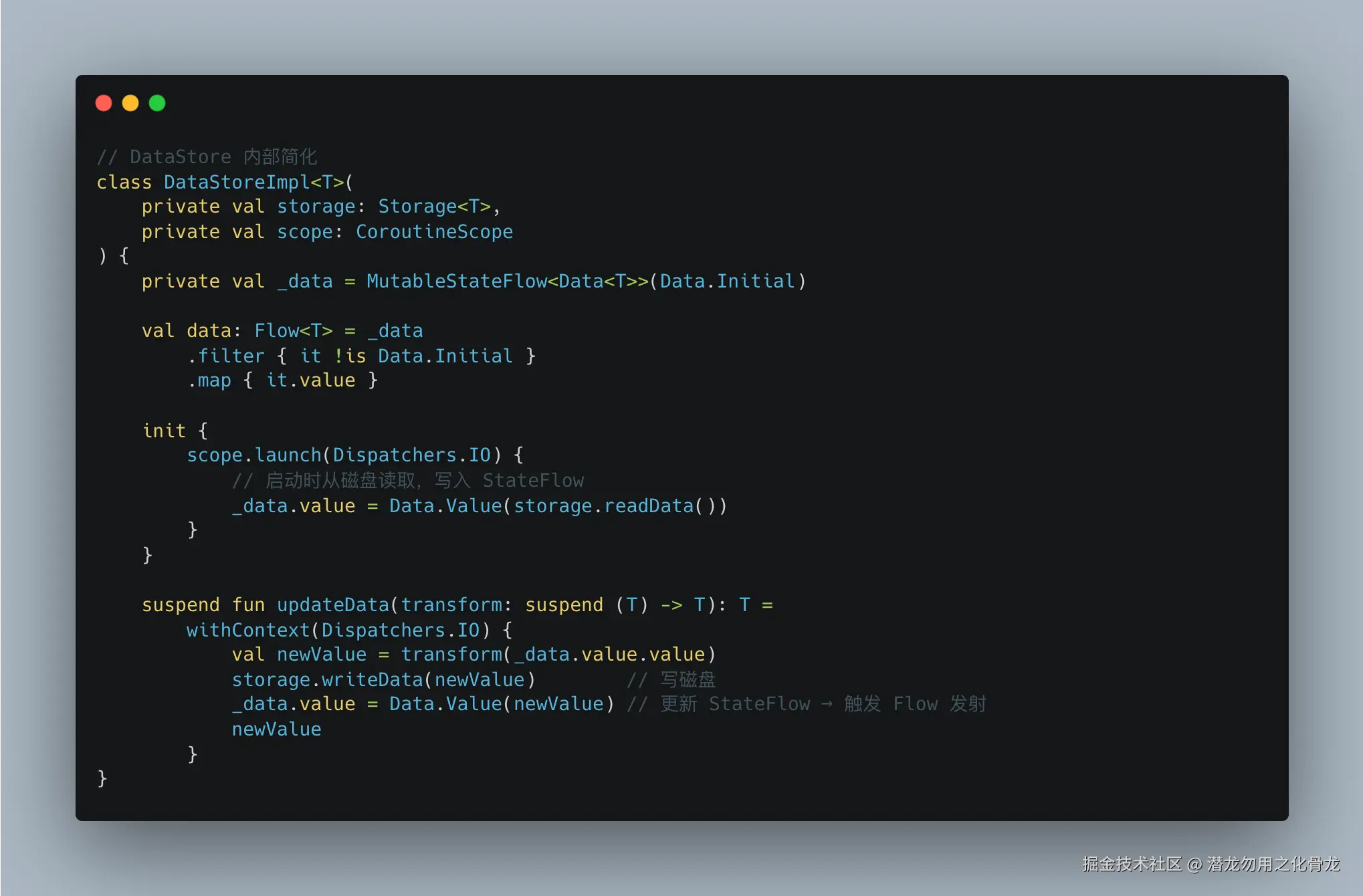 DataStore 的数据流基于 MutableStateFlow + 文件 IO 协程: