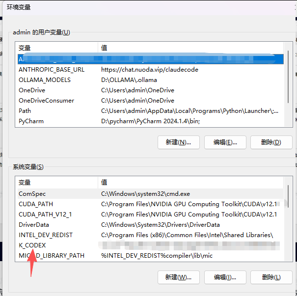 codex 不论是怎么装的,他默认都会去读取环境变量名K_CODEX