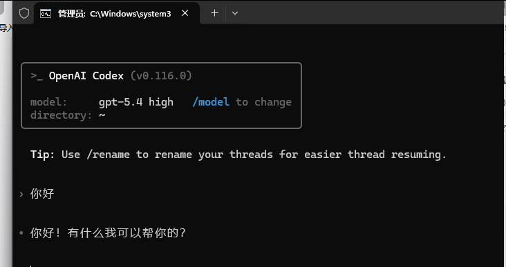 这个改完了,正常来说就能用了,在cmd 输入一个codex