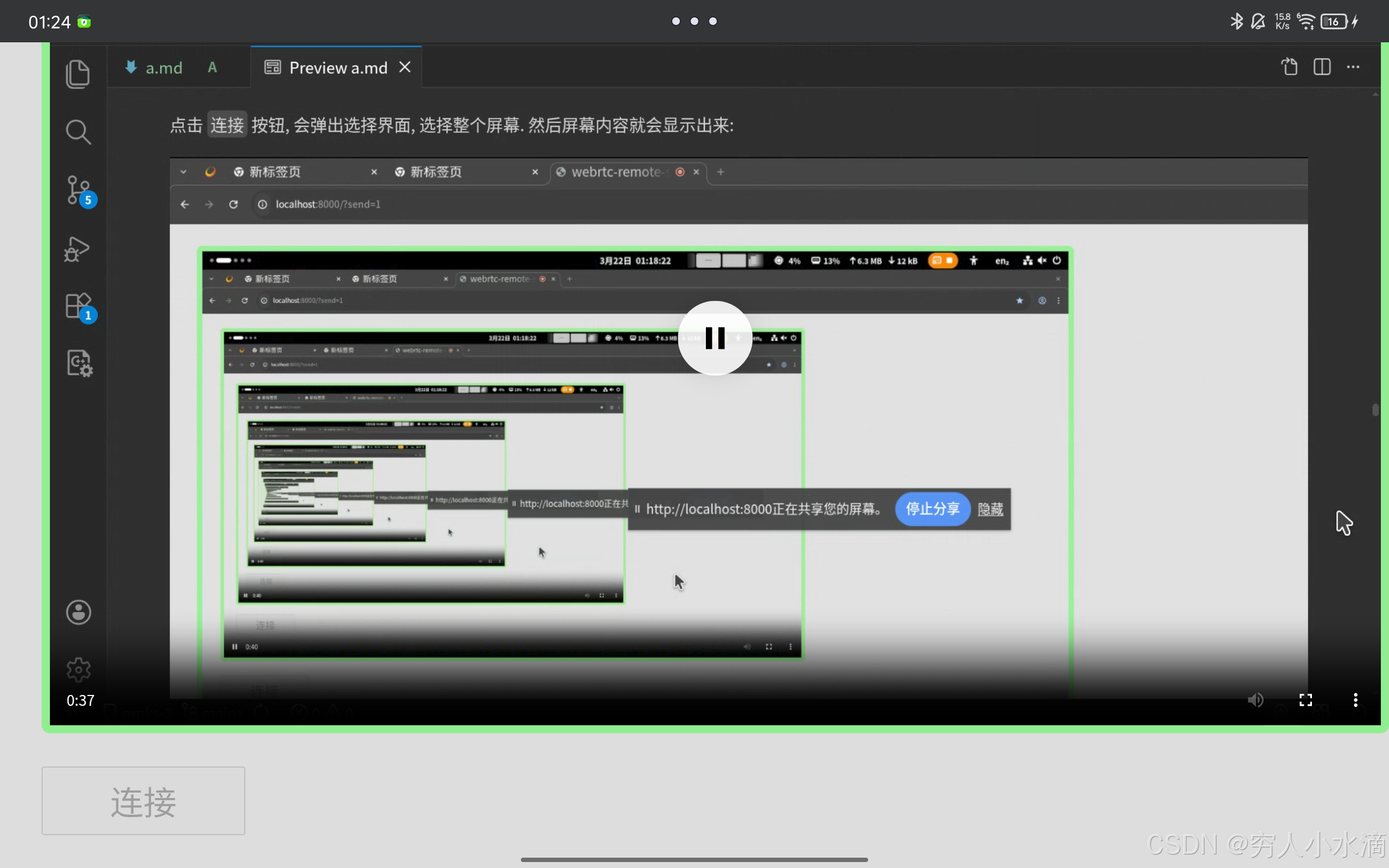 WebRTC 是浏览器内置的功能, 所以首先要写一个 web 页面, 用 js 实现大部分主要功能. 发送端 (PC, Chromium 浏览器) 是一个网页, 接收端 (Android) 也是一个网页.