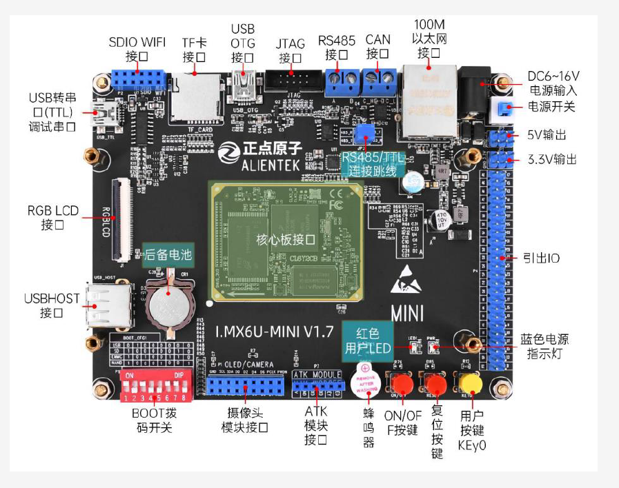 代码已经烧写到了 SD卡中了,接下来就是将 SD卡插到开发板的 SD卡槽中,然后设置拨