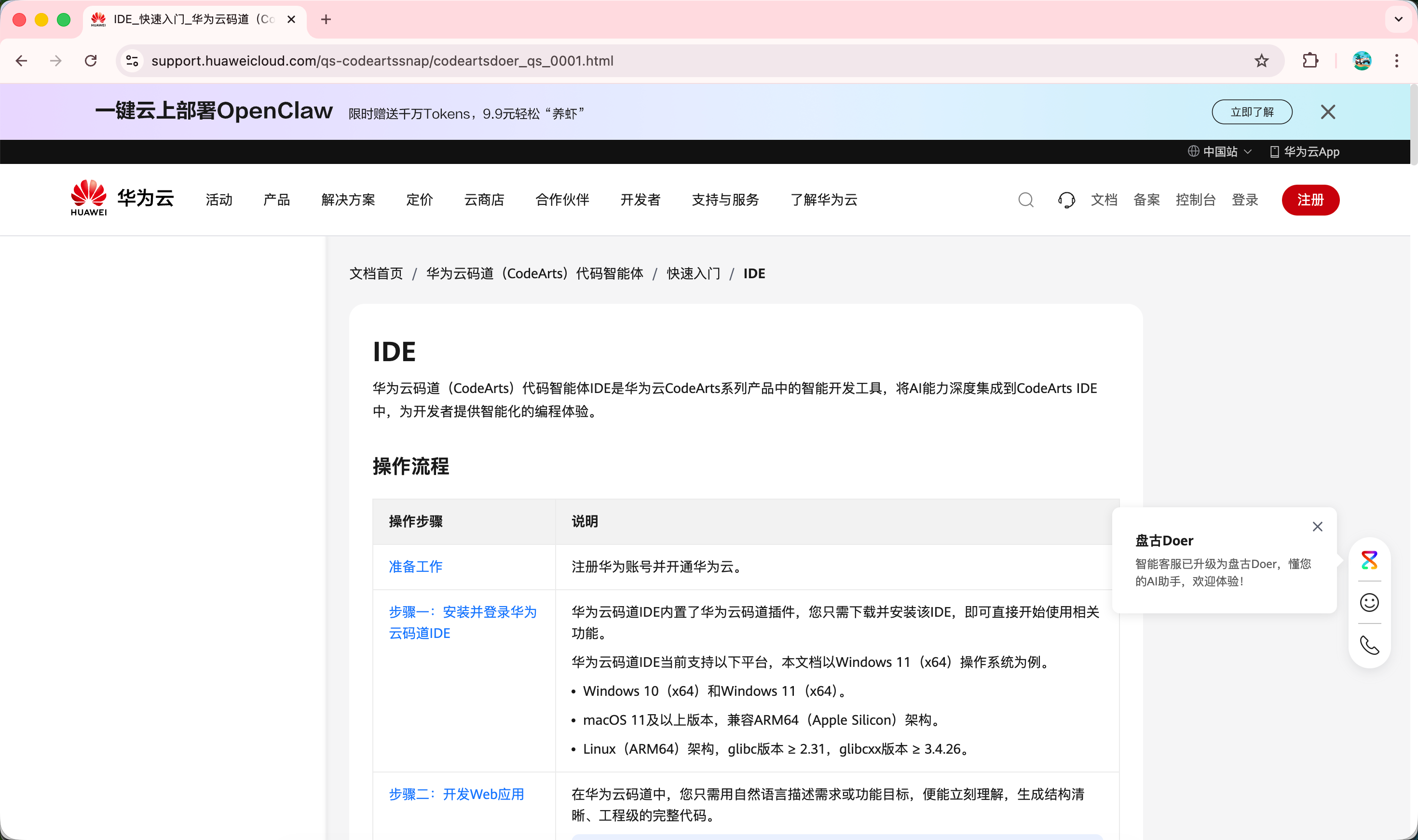 https://support.huaweicloud.com/qs-codeartssnap/codeartsdoer_qs_0001.html