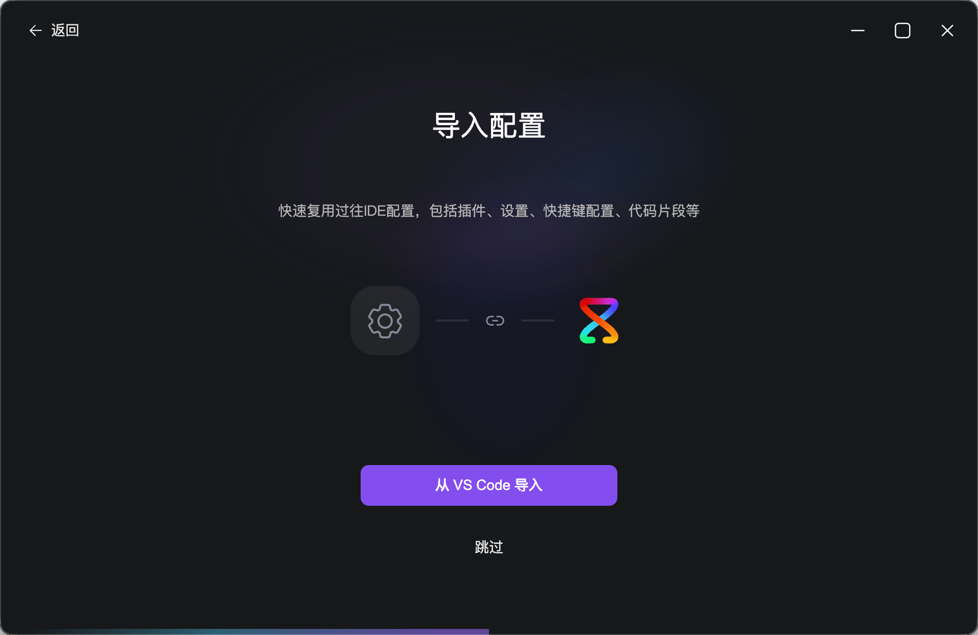 7.选择「从 VS Code 导入」(迁移已有项目配置)或「跳过」------新用户直接跳过即可。