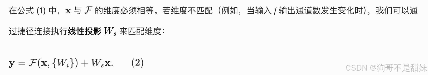 - 无法直接逐元素相加,需要对 x 做线性投影 Ws 来对齐维度。