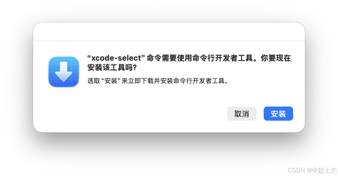 Xcode 命令行工具会自动安装 Git,安装完成后验证: