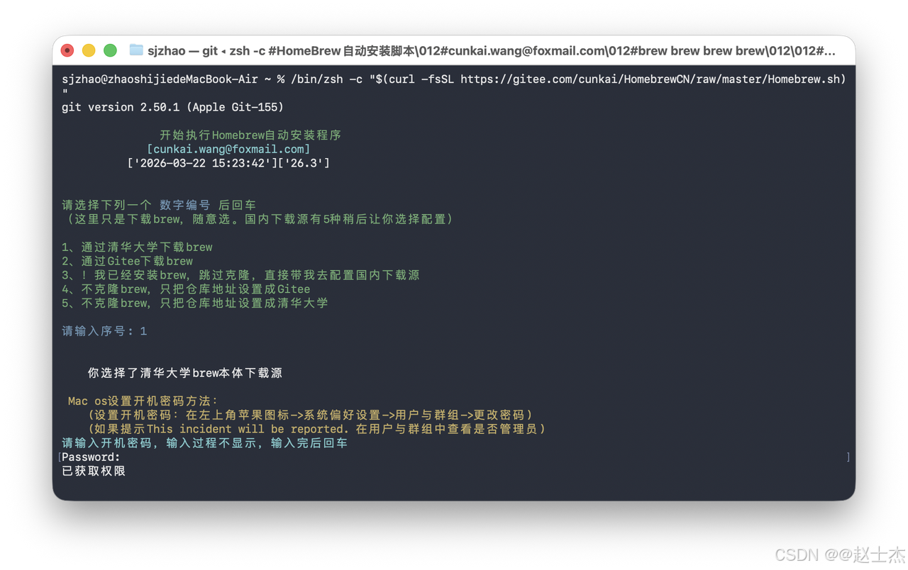 三、国内镜像一键安装 Homebrew(核心步骤)