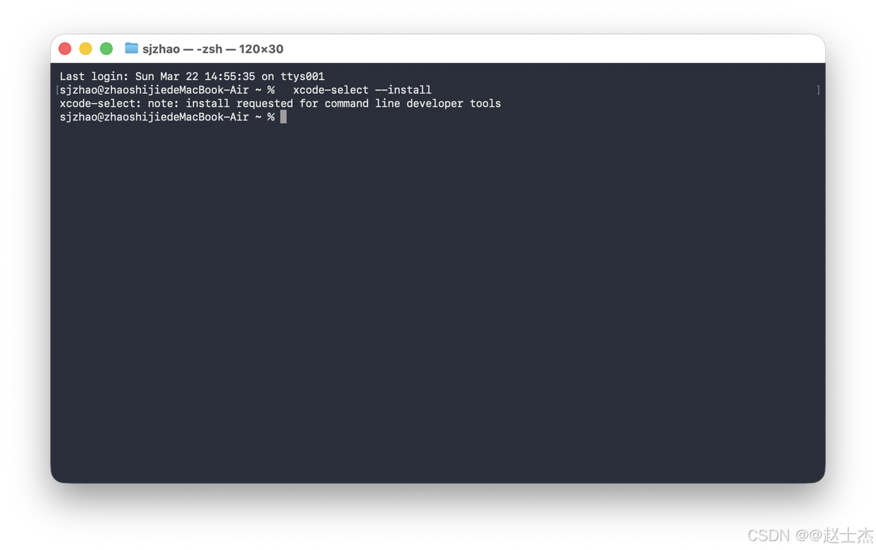 在终端输入以下命令,若输出路径 /Library/Developer/CommandLineTools,说明安装成功: