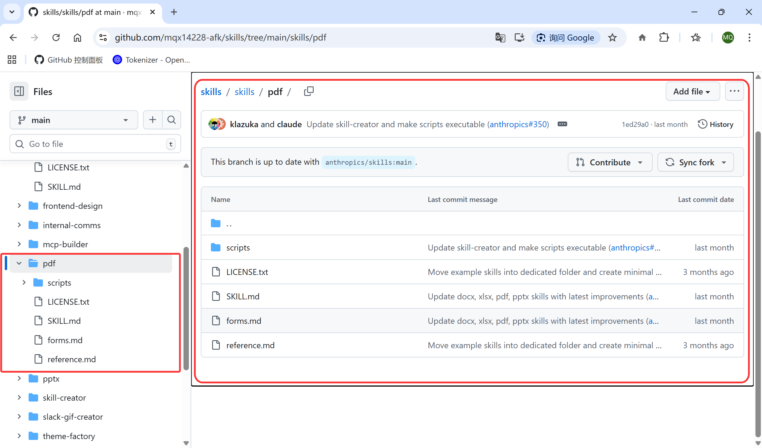 我们可以用MCP 的形式导入Skill,也可以直接从github:https://github.com/mqx14228-afk/skills/tree/main/skills/pdf 上导入SKill到我们项目的文件夹中。
