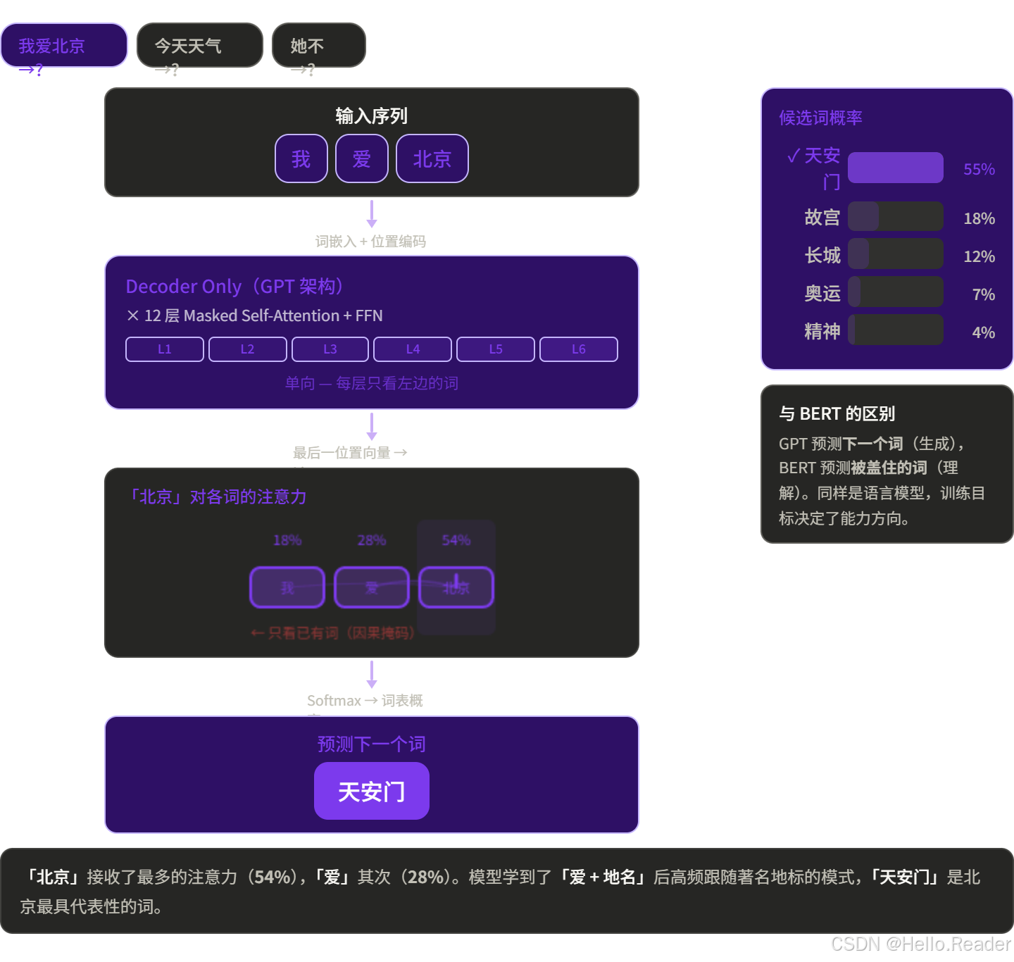 | Attention 方向 | 双向(看全句) | 单向(只看左边) |