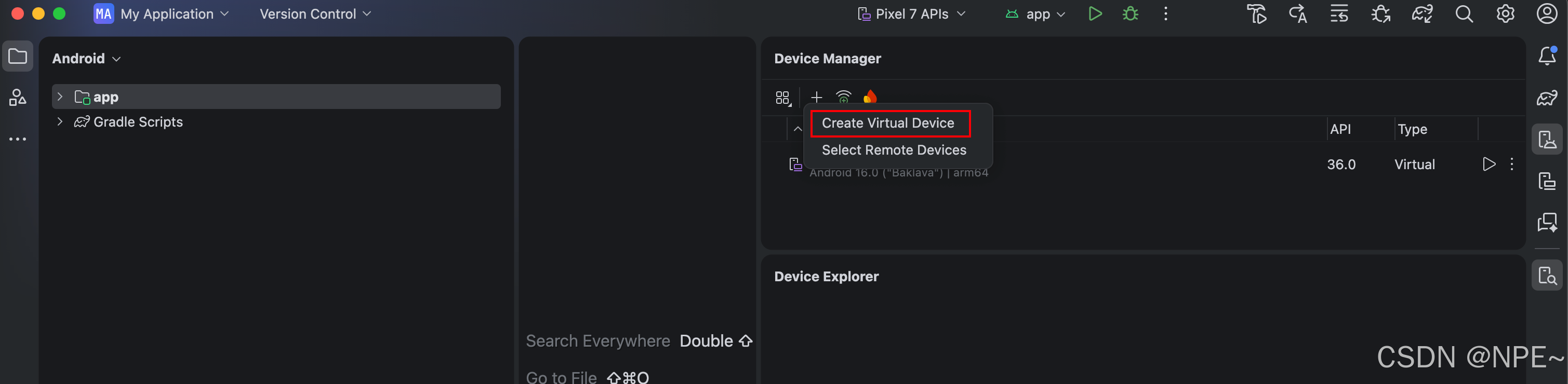 - 打开 Device Manager(设备管理器),点击 Create device。