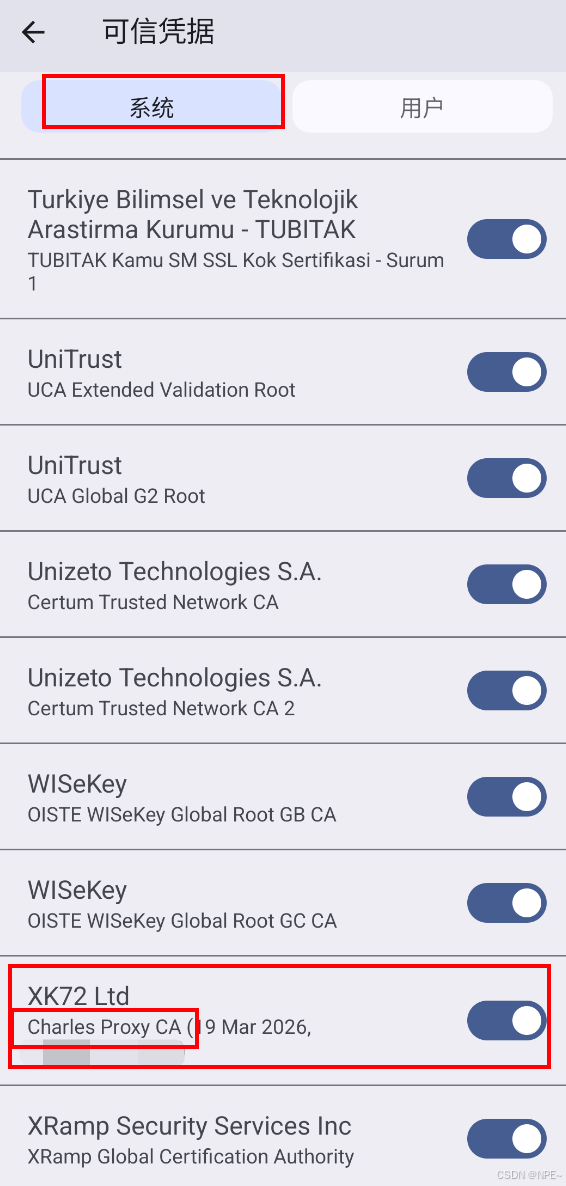 - 验证效果:设置-证书管理应用-可信凭据-系统证书,观察是否存在Charles证书