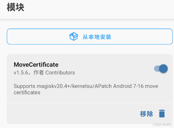 方式二:使用 MoveCertificate Magisk 模块(自动移动,推荐)