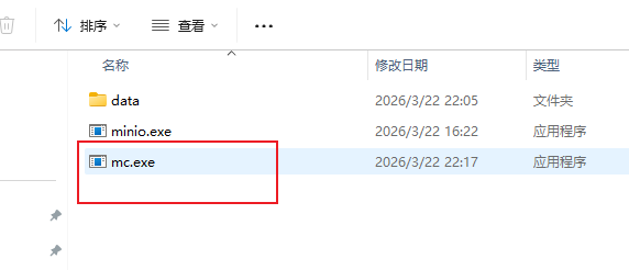 尽量将mc.exe和minio.exe放一块,这样打开同一个目录即可同时操作两个。