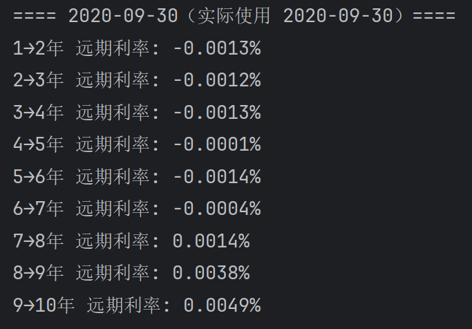 print(f"{l} 远期利率: {v:.4f}%")