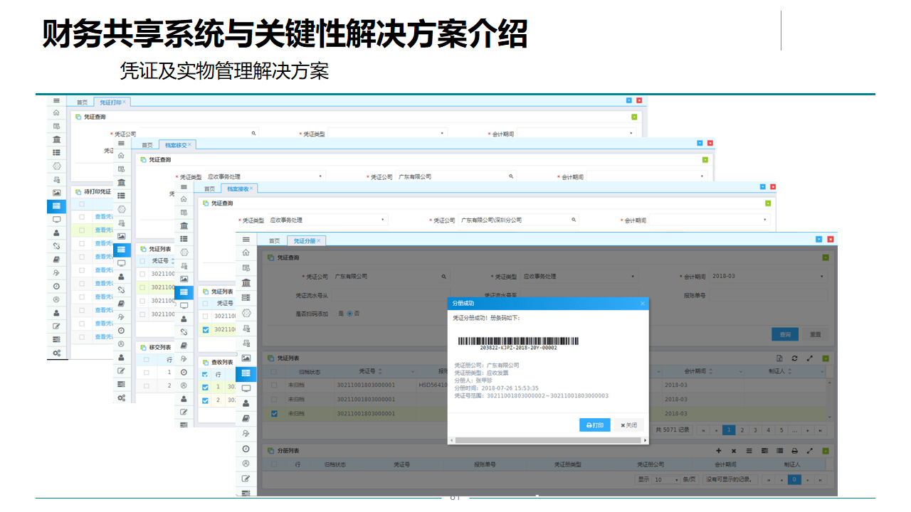 - 影像中心: 统一管理电子发票、合同、单据等影像资料。支持自动归档、智能检索、关联查询,实现无纸化运营。