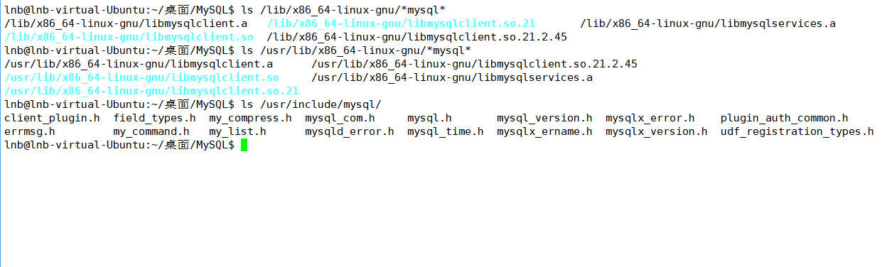 但是其实还有一种情况,那就是我们在安装MySQL的时候,它就自动给我们下载了。当然不同的系统和版本会有出入,有的系统可能头文件和动态库都有,有的系统会缺少头文件,就像我的Ubuntu中就却少了头文件,因此我们需要下载一下,如下图