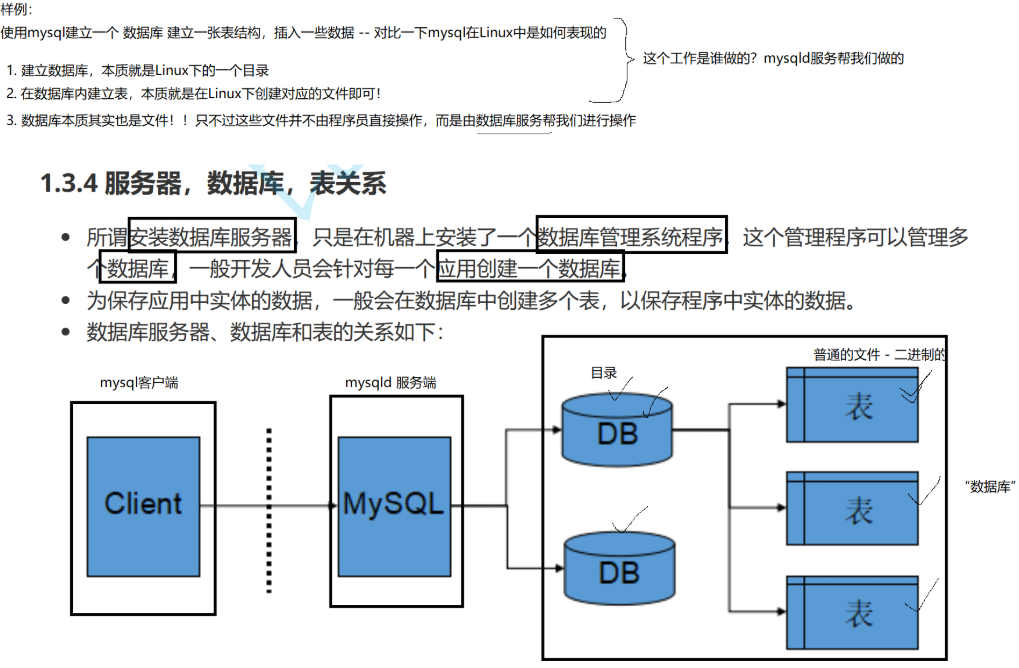 注意区分mysql和mysqld之间的关系;掌握mysql和mysqld以及磁盘这三者的联系