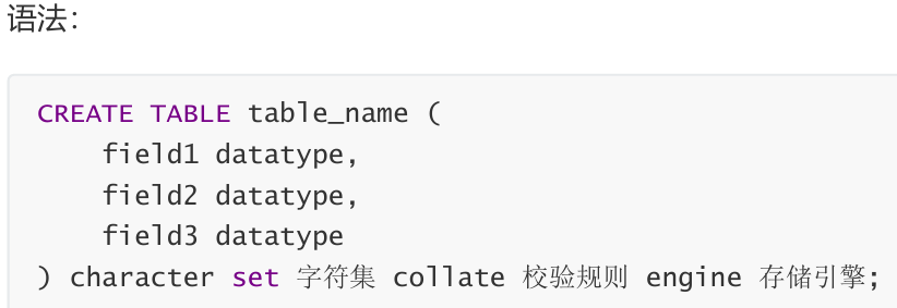 character set 字符集,如果没有指定字符集,则以所在数据库的字符集为准 collate 校验规则,如果没有指定校验规则,则以所在数据库的校验规则为准