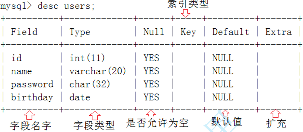 它是"字段描述信息数组"。每个元素描述一列,比如: