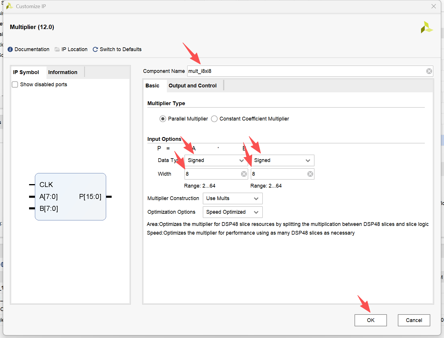 - 打开乘法器IP配置页面