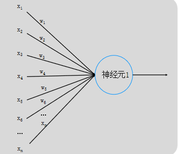 神经元1为输入层,而外部传入的x1、x2、x3、x4、x5、......全部都是外界即将传入神经元的电信号,这些电信号在传入途中可能会有所损耗,而损耗完剩下的才会传入神经元,这些传入的实际信号就用w1x1、w2x2、w3x3、w4x4、w5x5、......来表示,w叫做权重。