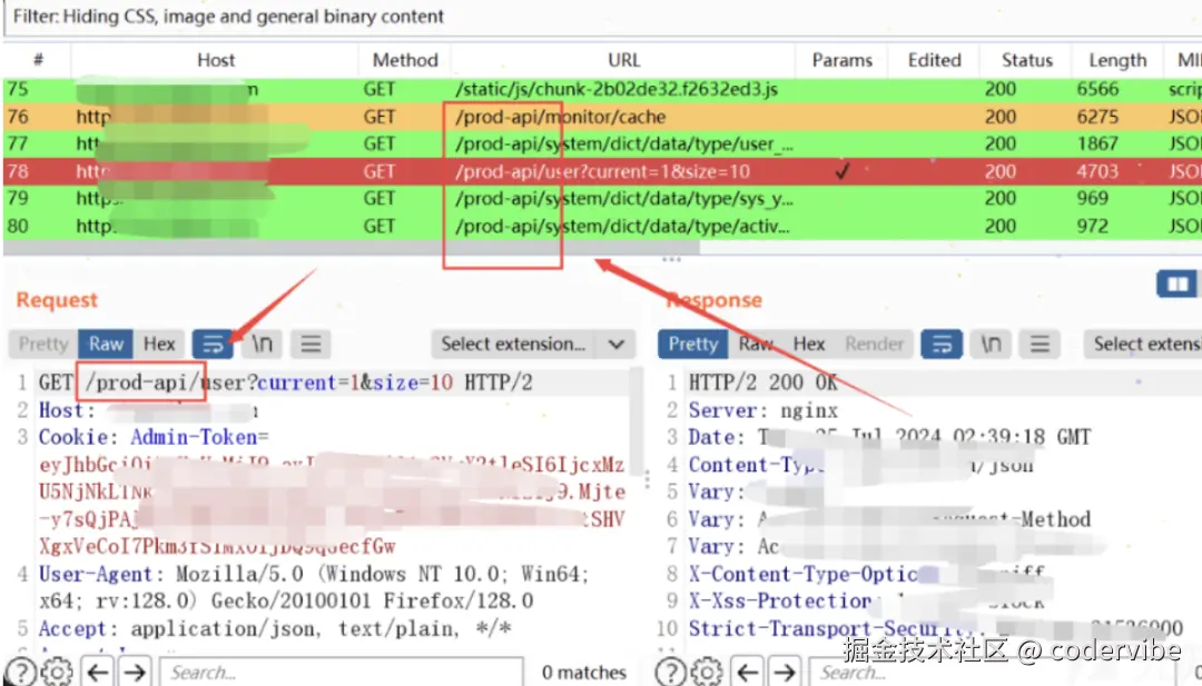 /prod-api接口,其实看若依系统多的师傅们都这到这个接口就是若依框架的常见的一个关键字接口。