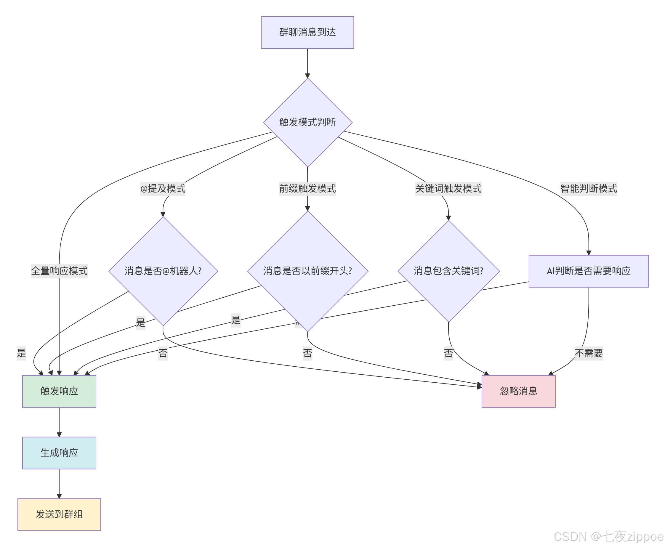 在你的应用场景中,群聊的触发模式应该如何选择?不同模式各有什么优缺点?