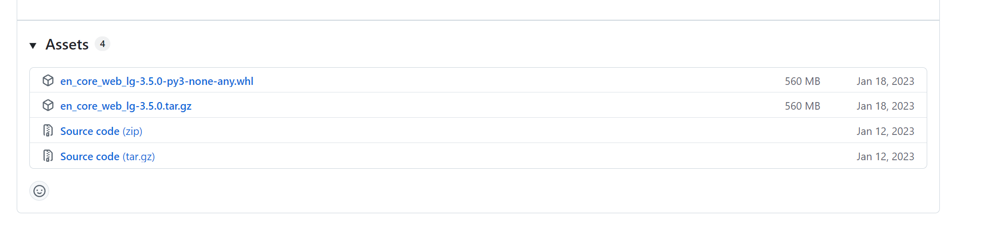2.https://github.com/explosion/spacy-models/releases/tag/en_core_web_lg-3.5.0