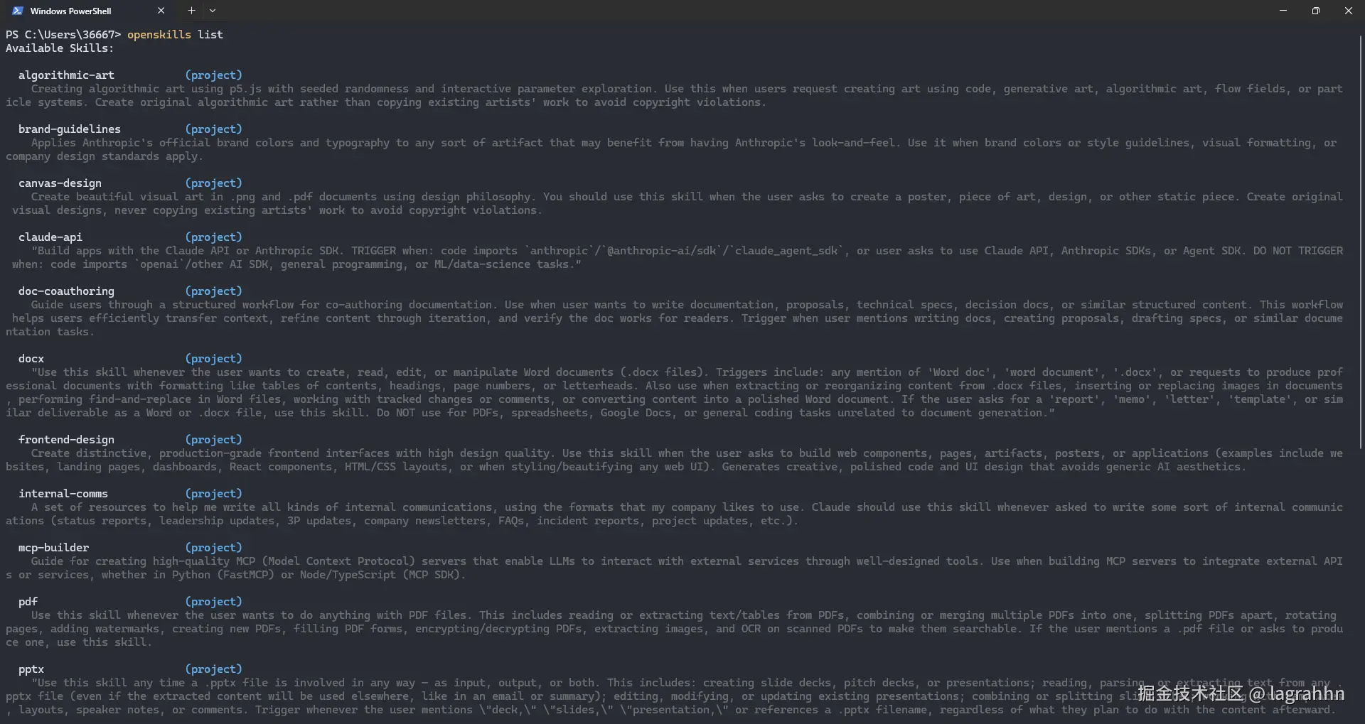一般,在当前项目文件下是无法使用openskills里的skills的,需要运行