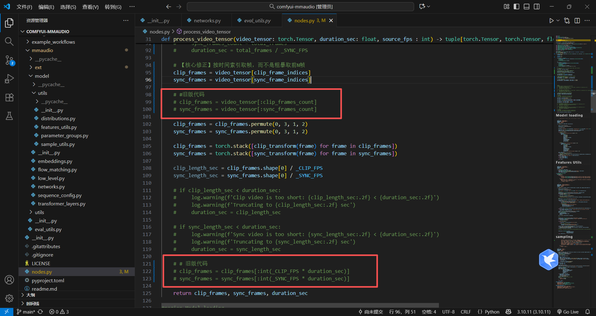 先还原节点的代码,然后处理视频,这里就不进行放大了,反正只是测试音频,先给视频补帧,然后做两个测试对比