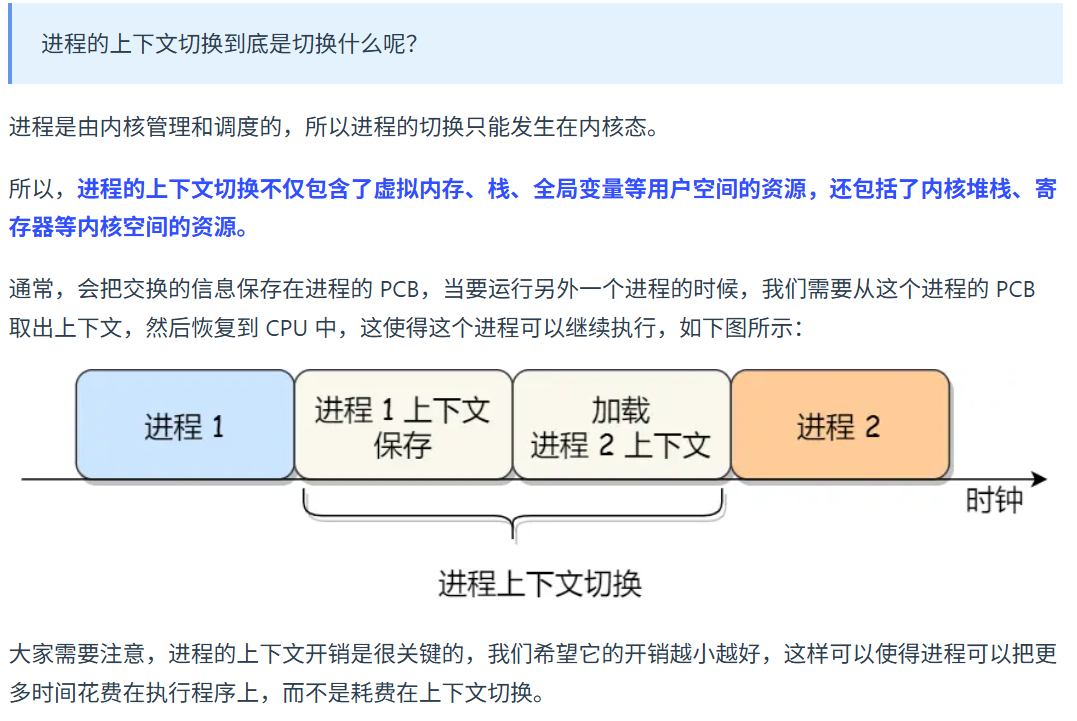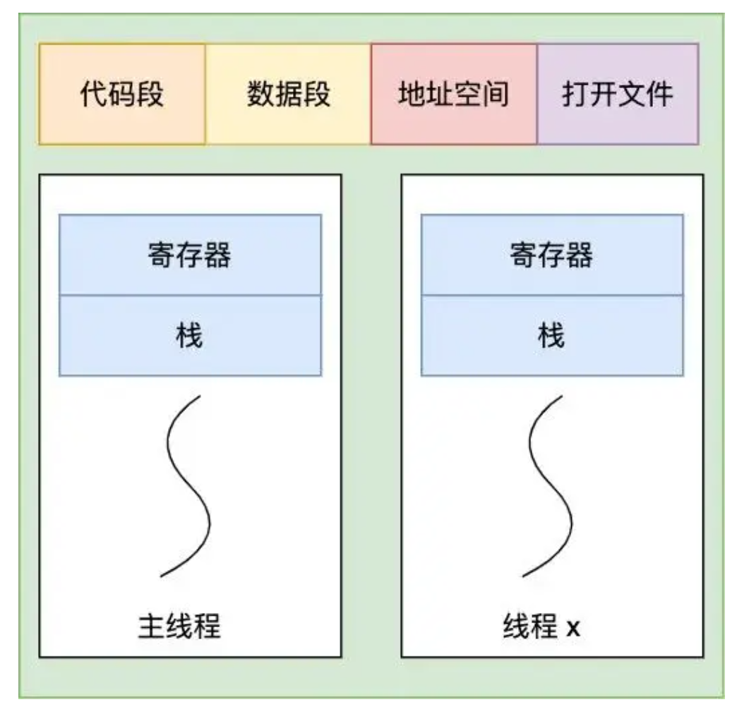 线程是进程的一个部分。一个进程中的线程共享上下文,如地址空间。