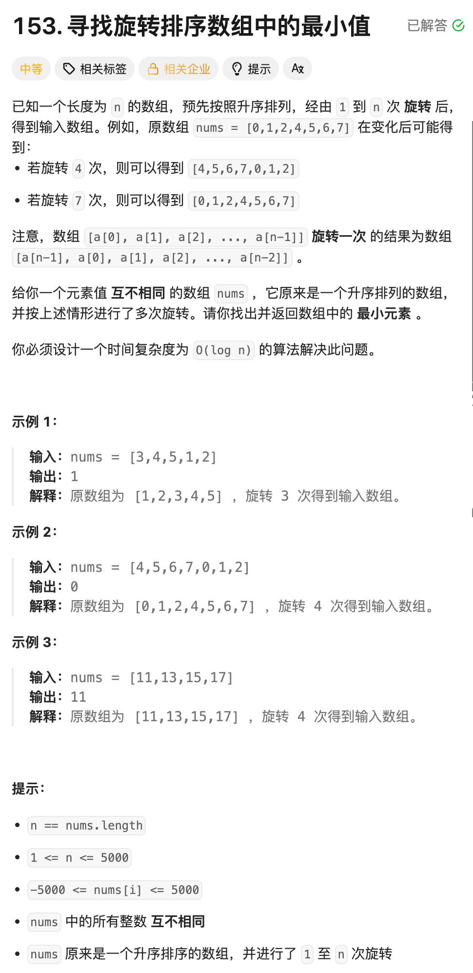 cout << "测试用例3:[1,2,3,4,5] → 最小值:" << sol.findMin(nums3) << "\n\n";