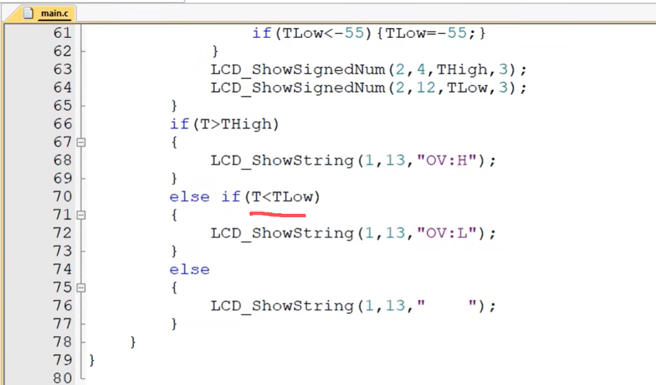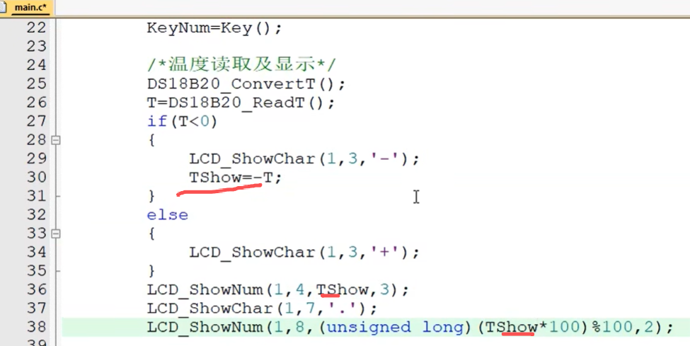 现在按键按下不松手温度是不会变化的:现在是按键扫描,按键不松手里面一直在延迟了,主函数就不执行了,我们来改成定时器扫描