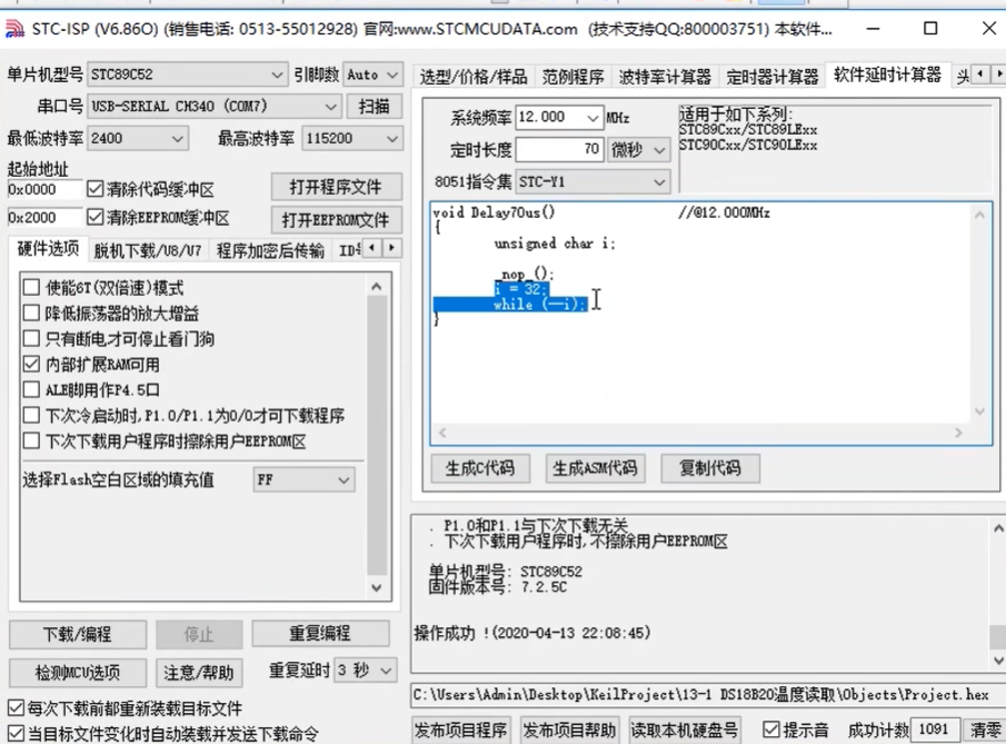 480us:非常小,不能用delay函数